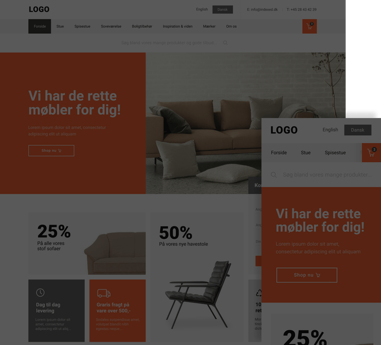 En lynhurtig, moderne og SEO venlig webshop som skalerer med din forretning. Grundstenen er lagt med fuld understøttelse af mange valuta og sprog til internationalt brug.